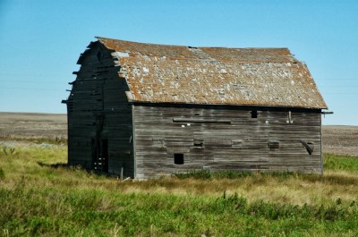 | This barn is on its way to becoming intangible as it slowly decays on the prairie. |